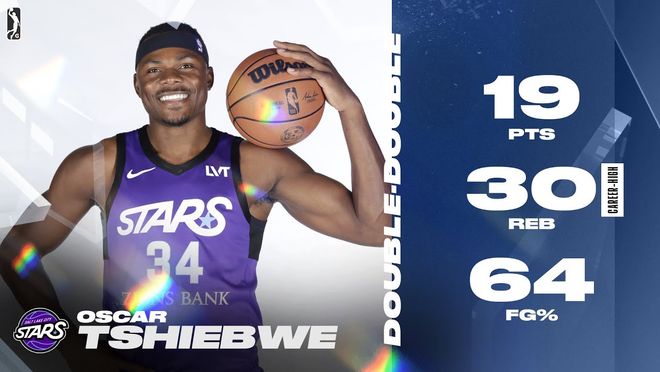 本场比赛中,被爵士下放到NBA发展联盟赛场进行锻炼的双向合同内线球员奥斯卡-希布韦(Oscar Tshiebwe)的表现还是相当惊艳的。希布韦全场出场30分钟,投篮14中9,罚球2中1,得到了19分30篮板1助攻3抢断3盖帽的两双数据,其中还包括了12个前场篮板,还有3次失误和2次犯规,正负值也是达到了全场最高的+38。希布韦在进攻端还是保持了不错的篮下效率,他也是得到了不少分数,而且他在前场篮板的表现也是算得上现象级的。希布韦在防守端的表现也是可圈可点的,他也是展现出了出色内线防守能力和护框能力。总体来看,希布韦在本场比赛中的表现算得上是攻守兼备,他也是展现出了自己全方位的个人能力。+38的正负值更是能够说明他在场上时球队的局面有多出色。