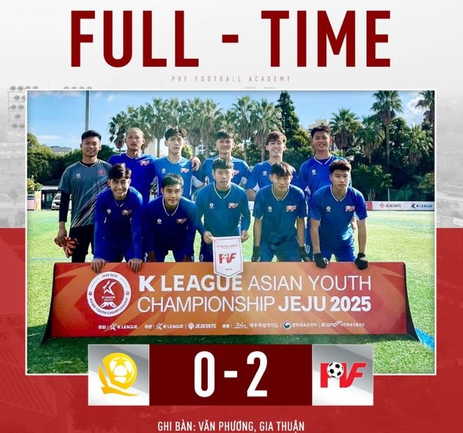 越南媒体的消息,在济州岛进行的2025年K联赛亚洲青年锦标赛小组赛首回合中,越南的PVF与水原队战成了1比1,而恒大U18(Evergrande)则是和首尔U18战成了2比2。